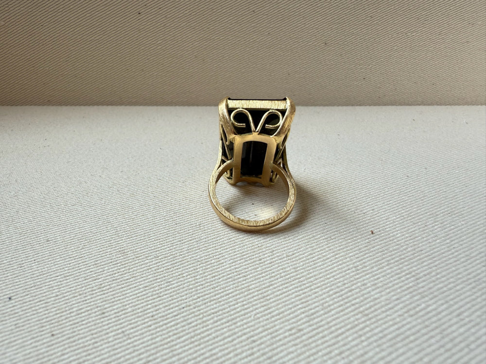 Anillo oro con gran piedra natural verde oscura