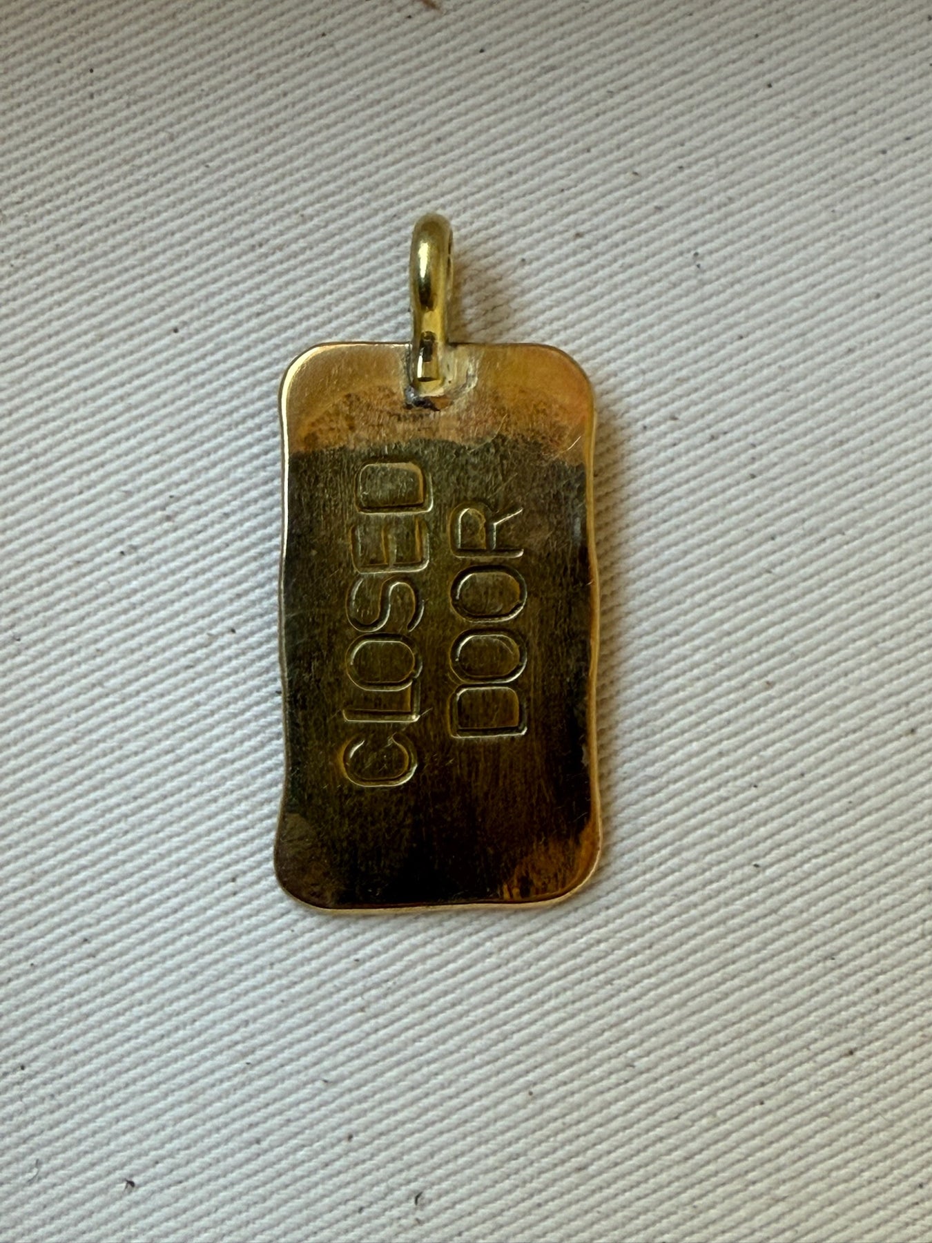 Placa de bronce grabada. Una vez más el bronce es el protagonista de esta pieza diseñada por Consuelo Pérez.