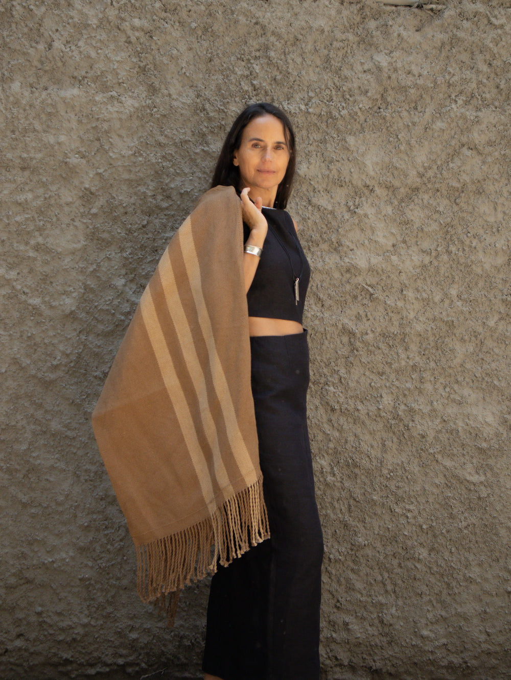 Manta Camel Negra Lino