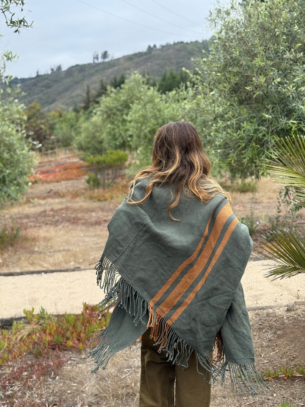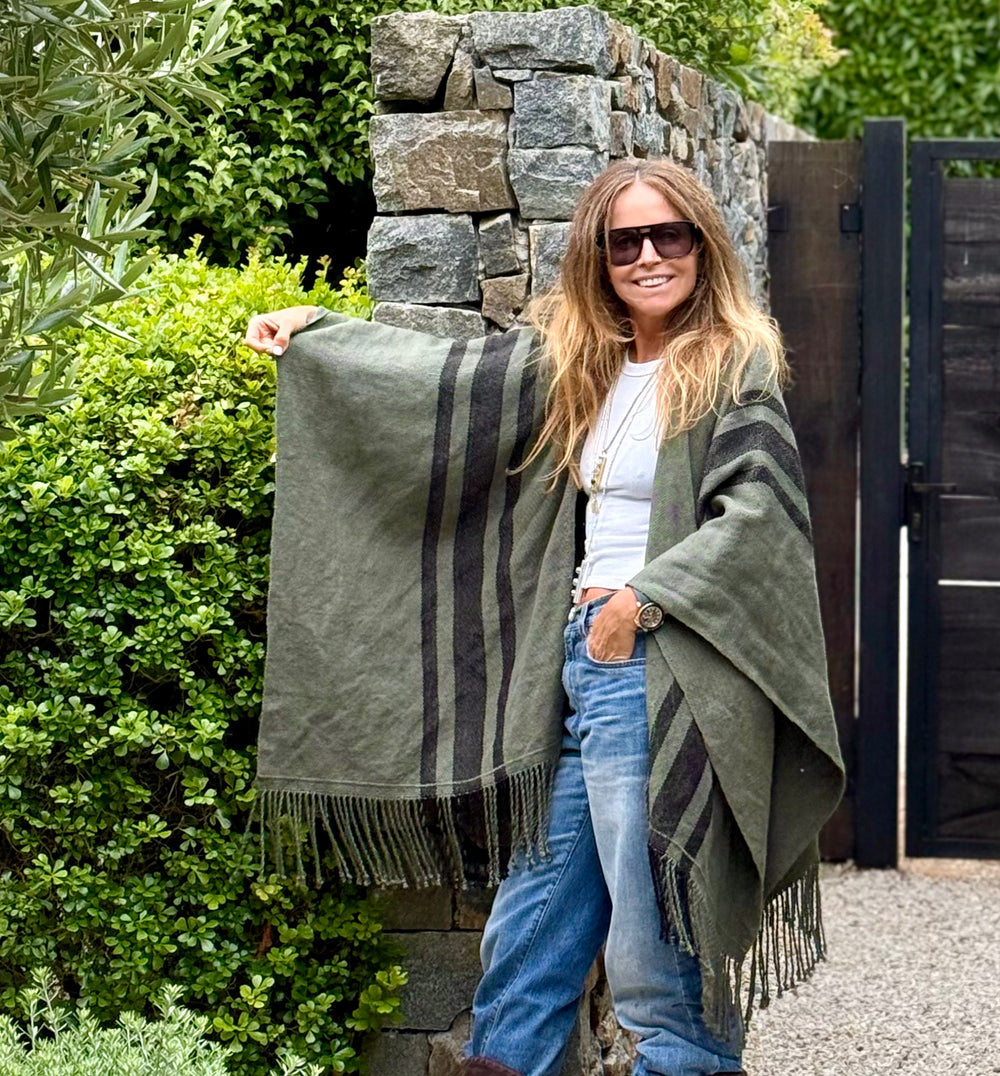 Manta de Lino Verde Militar Oro
