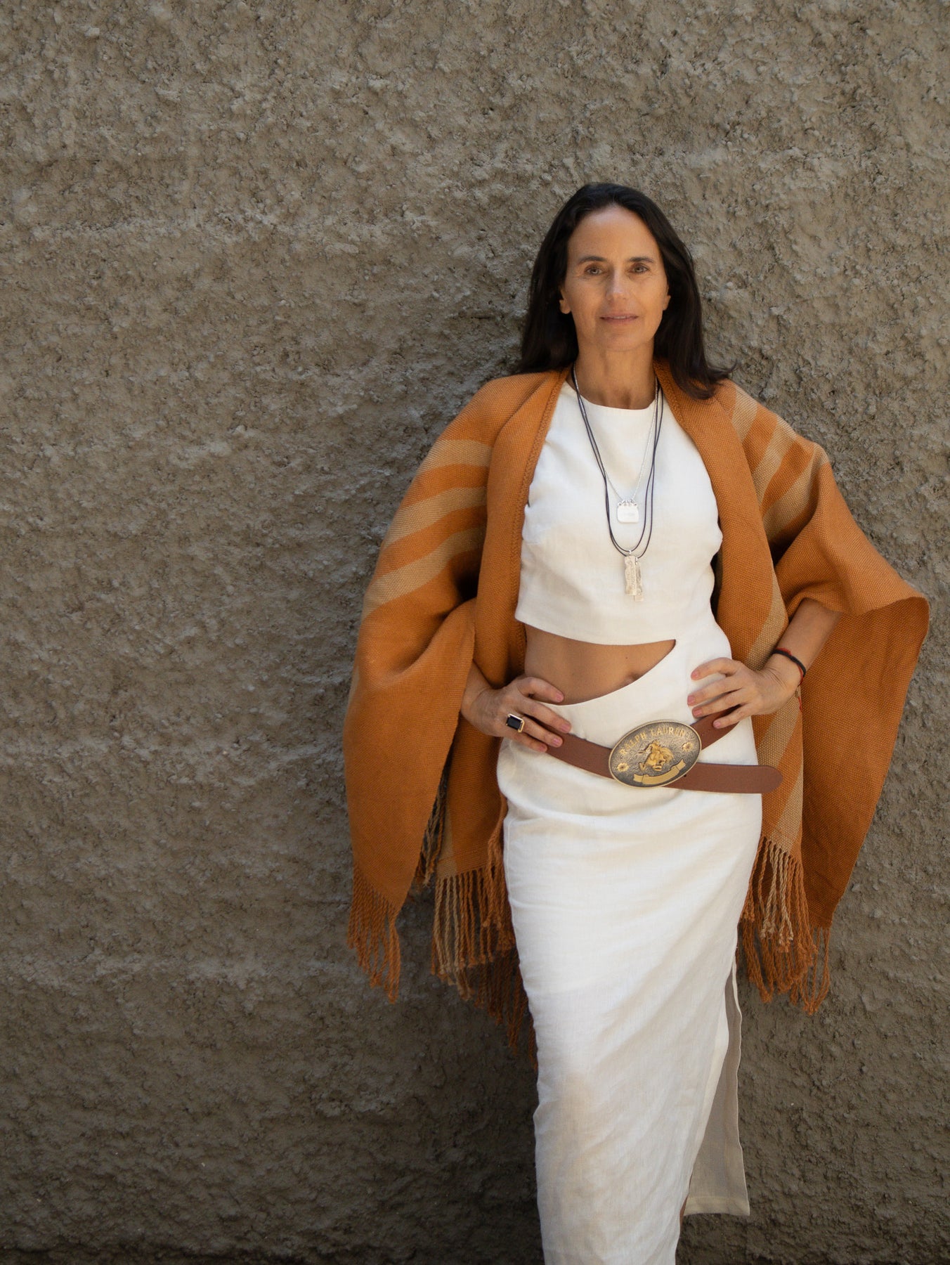 Manta de Lino hecha a mano en telares de madera por hábiles artesanos chilenos. Su textura noble es muy duradera, fresca y resistente. Añadiendo un toque de sofisticación y exclusividad a tu atuendo, junto con una frescura y versatilidad incomparable.