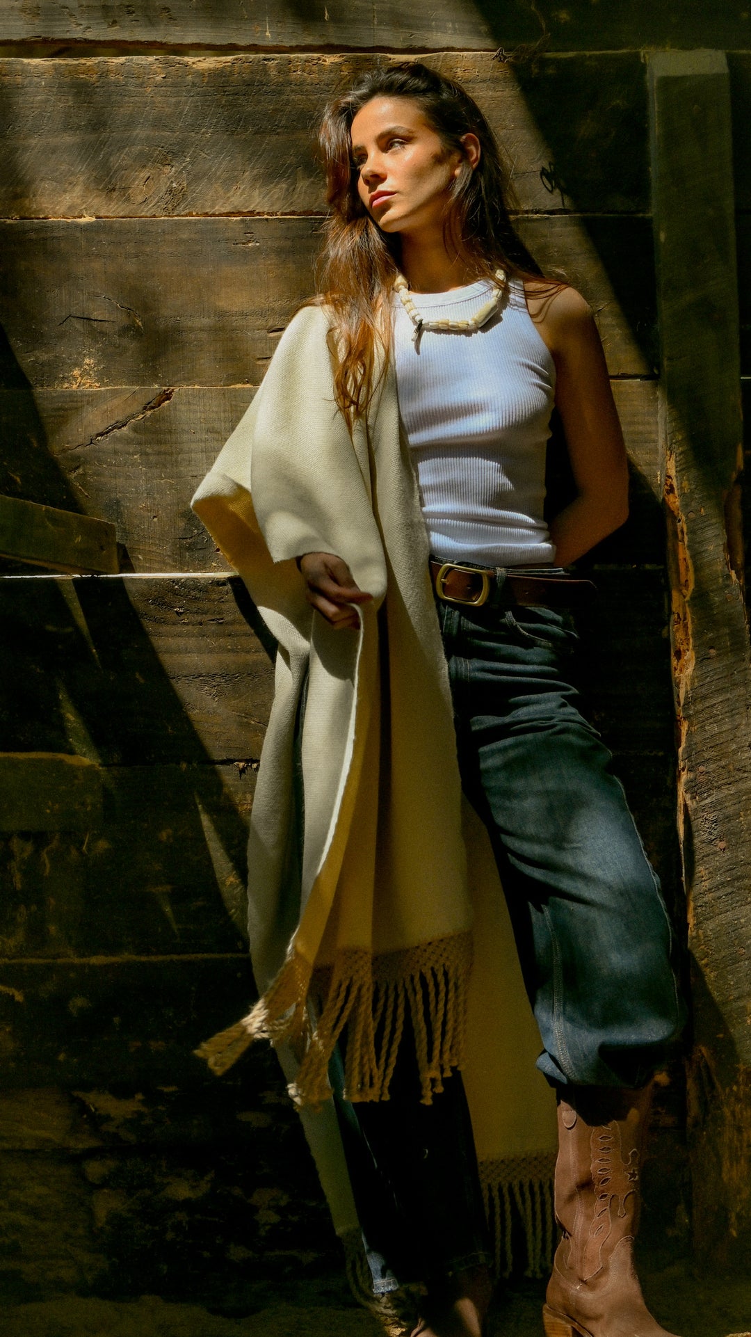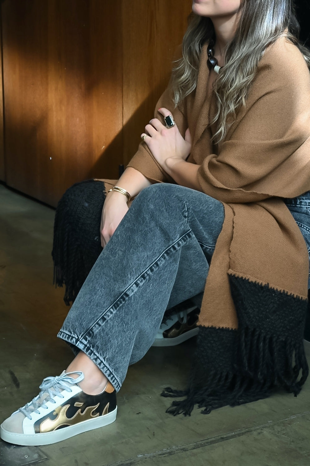 Tapado Alpaca Camel Negro Macramé